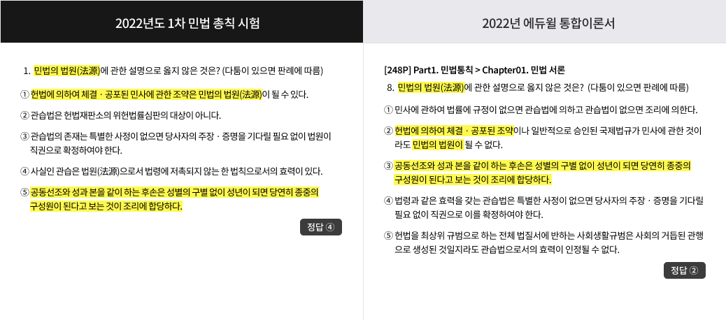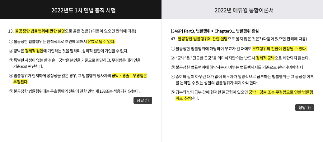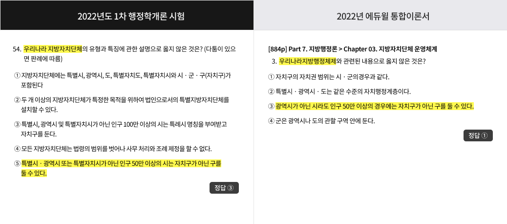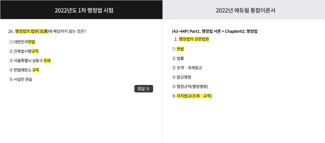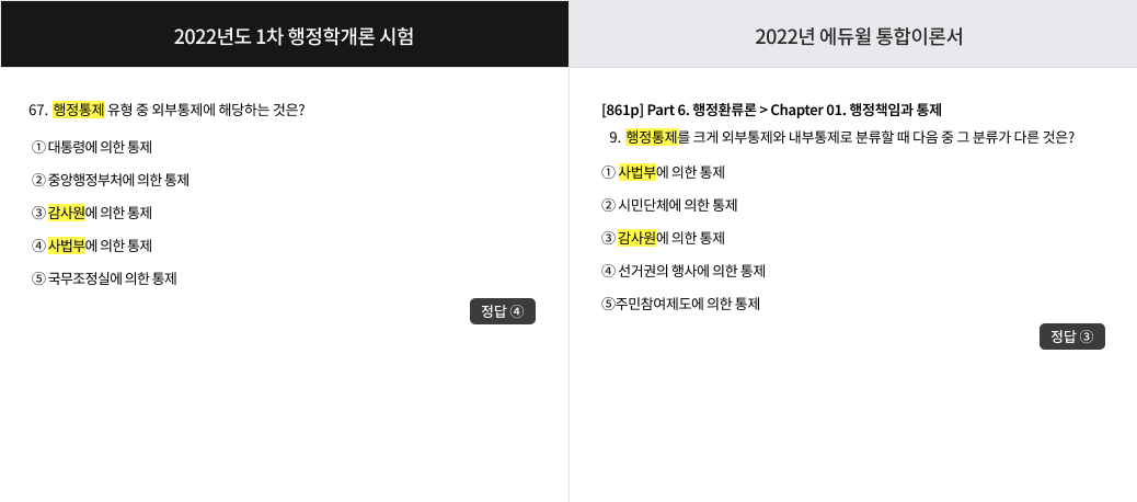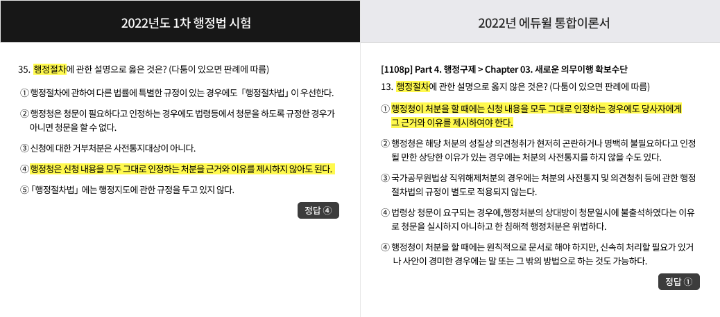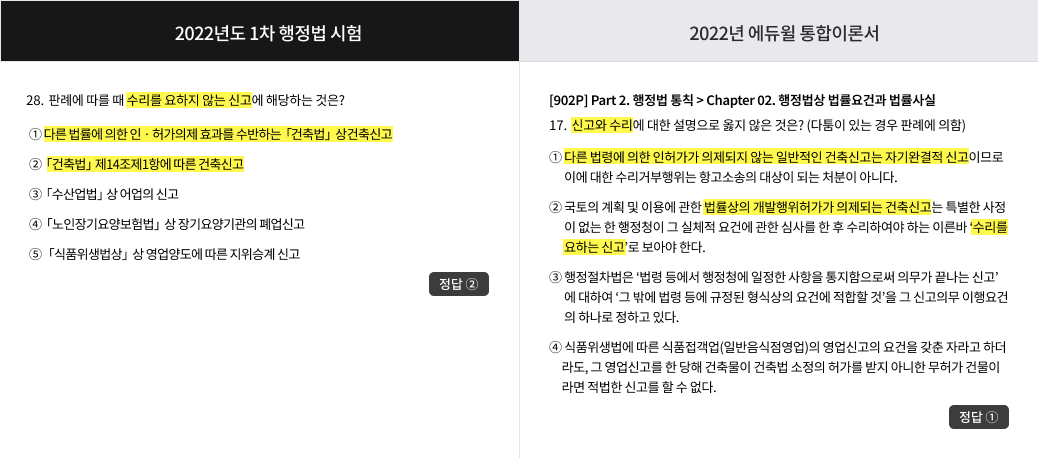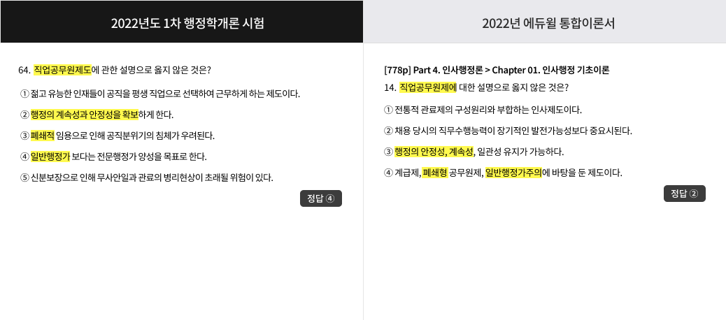 * 2022 행정사1차 통합이론서 교재 / 2022 제10회 행정사1차 기출문제 문제유형 비교