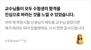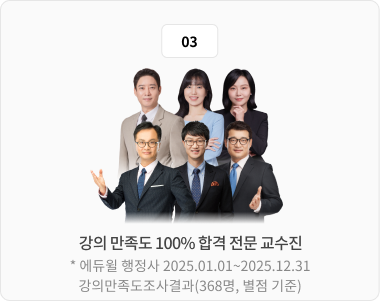 5년 연속 1위를 만든 만족도 100%* 명품 교수진이 합격을 이끕니다