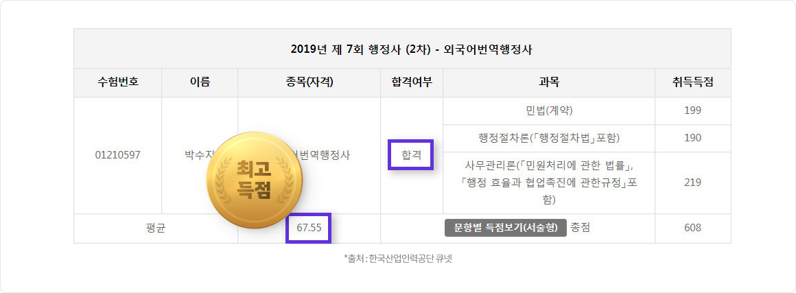 1위* 에듀윌 행정사 최고득점, 수석 합격자 배출 수강생이 추천하고, 합격생이 증명합니다